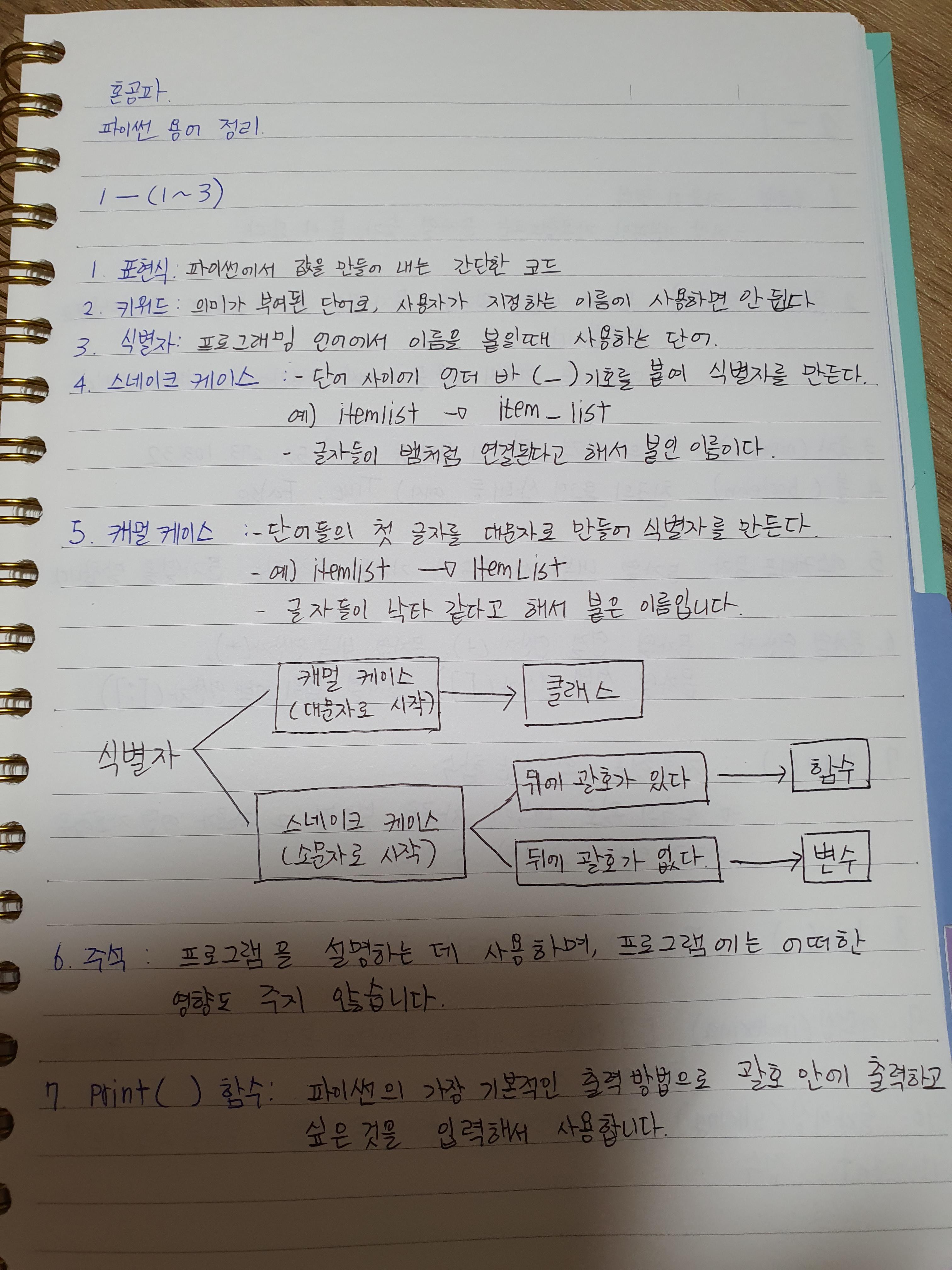 파이썬에서는 첫번째 글자가 소문자라면 무조건 스네이크 케이스입니다. 대문자라면 캐멀케이스입니다.