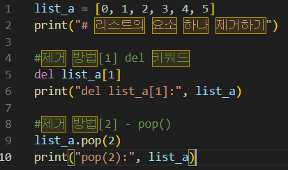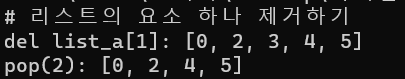 1. 인덱스로 제거하기 (del키워드, pop() )