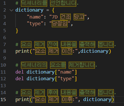 | del 키워드 : 리스트의 특정인덱스에있는요소를 제거합니다. del 리스트명[인덱스] |