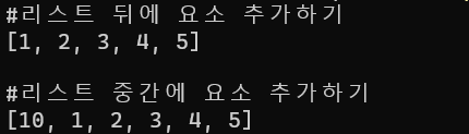 * append()함수와 insert()함수는 리스트에 요소 하나를 추가합니다.