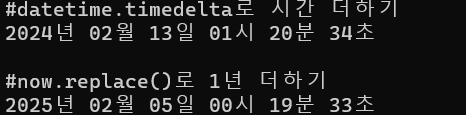 timedelta()함수 를 사용하면 특정한 시간의 이전 또는 이후를 구할 수 있습니다.