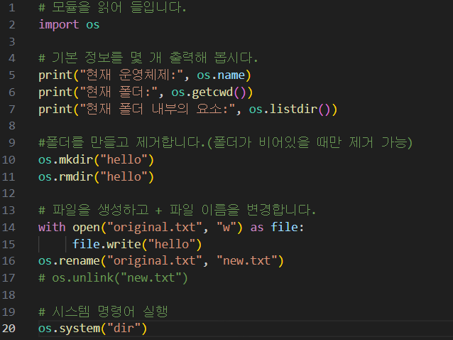 새로운 폴더를 만들거나 폴더 내부의 파일 목록을 보는 일도 모두 os 모듈을 활용해서 처리 합니다.
