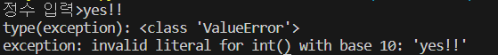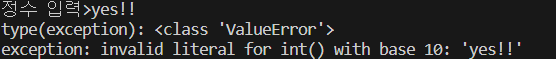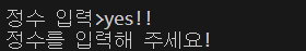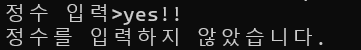 | 정수 입력> yes!! Enter 정수를 입력하지 않았습니다. |