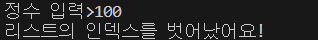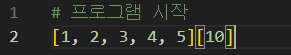 | # 프로그램 시작 print("# 프로그램이 시작되었습니다!") # 예외 발생 코드 list_a[1] |