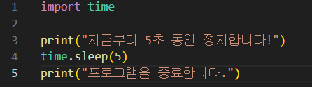 time.sleep()함수 :특정 시간 동안 코드 진행을 정지할 때 사용하는 함수입니다.