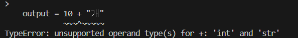 | output = 10 + "개" # 1. int("안녕하세요") # 2. cursor.close) # 3. [1, 2, 3, 4, 5][10] # 4. |