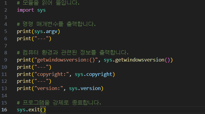 sys 모듈: 시스템과 관련된 정보를 가지고 있는 모듈입니다.