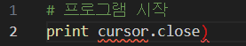 | # 프로그램이 시작되었습니다! ------> 여기까지는 프로그램이 정상으로 실행되었다는 것을 확인할 수 있습니다. Traceback (most recent call last) File "test.py" , line 5, in <module> list_a[1] NameError: name 'list_a' is not defined |