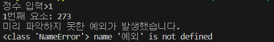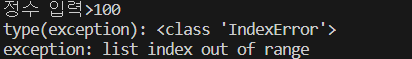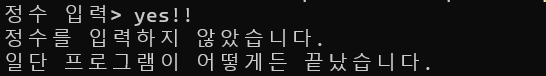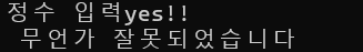 | 정수 입력> yes!! Enter 정수를 입력하지 않았습니다. |