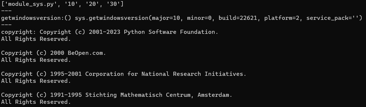 sys 모듈: 시스템과 관련된 정보를 가지고 있는 모듈입니다.