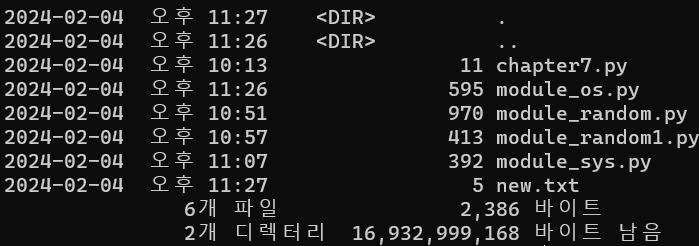 새로운 폴더를 만들거나 폴더 내부의 파일 목록을 보는 일도 모두 os 모듈을 활용해서 처리 합니다.