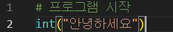 | # 프로그램 시작 print("# 프로그램이 시작되었습니다!") # 구문 오류 발생 코드 print("# 예외를 강제로 발생시켜 볼게요!") |
